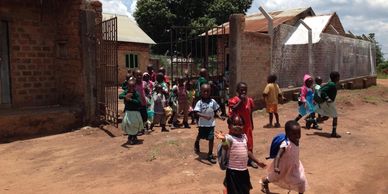 Since the Kitiibwa School is in a busy trading center, a fence was built to keep them safe from the traffic..